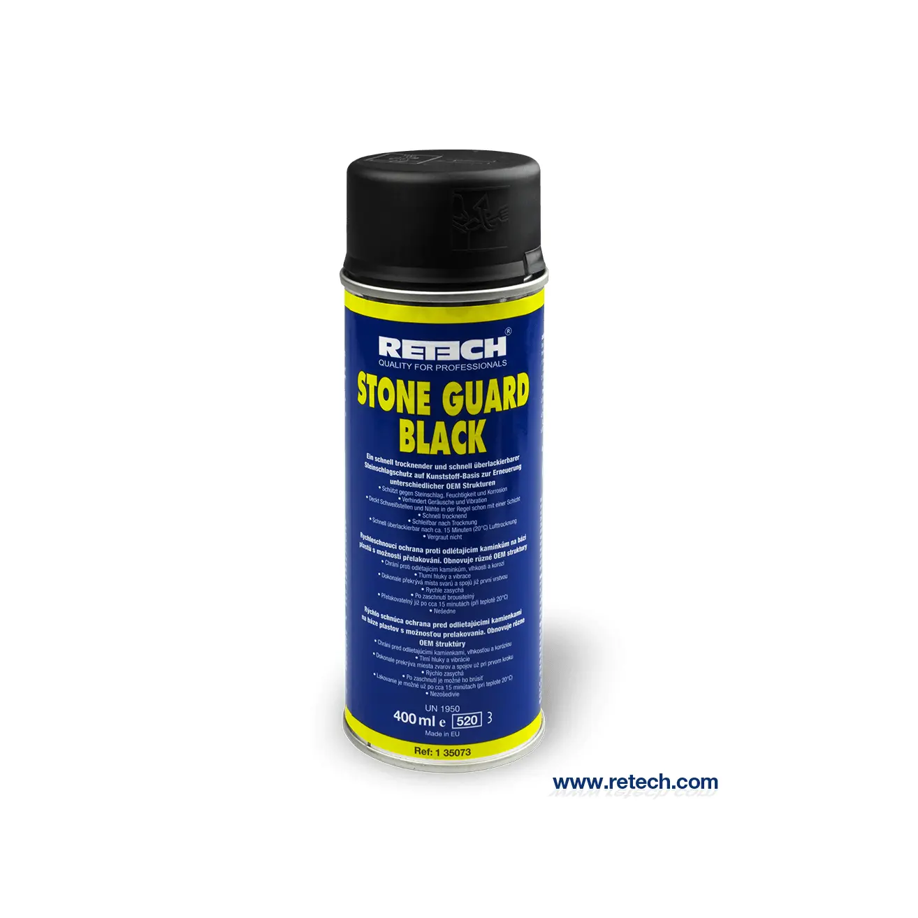 STONE GUARD BLACK е гъвкава боя за възстановяване структурата на автомобилните пластмаси. Създава оригинална пластмасова структура. Покрива малки драскотини, има отлична скриваща сила и бързо изсъхва. Различни видове конструкции могат да бъдат постигнати чрез промяна на разстоянието на дюзата от основата. Постоянна гъвкавост. Нанесете спрея на няколко тънки отделни слоя.Възстановява различни OEM структури. Предпазва от летящи камъни, влага и корозия, потиска шума и вибрациите. Той идеално припокрива местата на заварките и ставите още на първата стъпка. Съхне бързо.