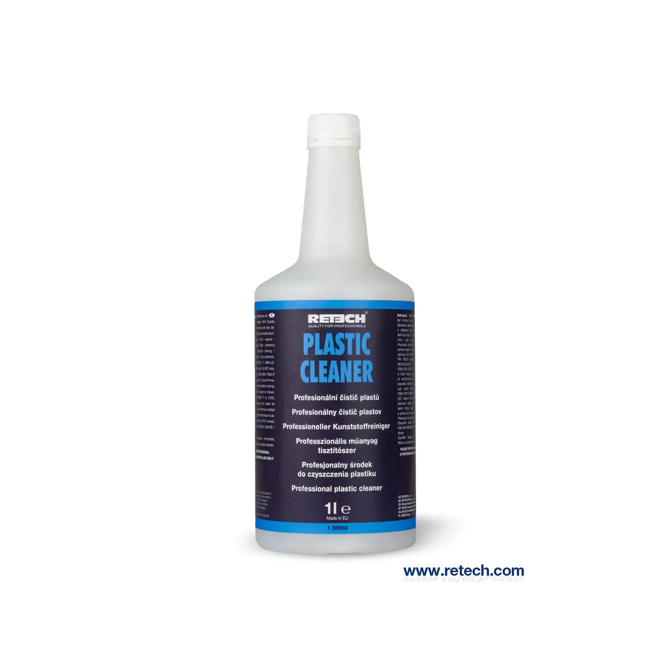 Професионален продукт, предназначен за почистване на всички пластмасови части като PP, ABS, HDPE, винил, плексиглас и други често използвани пластмаси. Използва се в автомобилната индустрия, особено за почистване на брони, спойлери, вътрешни и външни облицовки, тапицерии, решетки, капаци, перила, дръжки, табла, контролни панели и др. RETECH Plastic Cleaner ефикасно разтваря обичайните експлоатационни и вкоренени примеси, мазнини, биологични примеси и други.Матов вид на третираната повърхност.Без силикон.