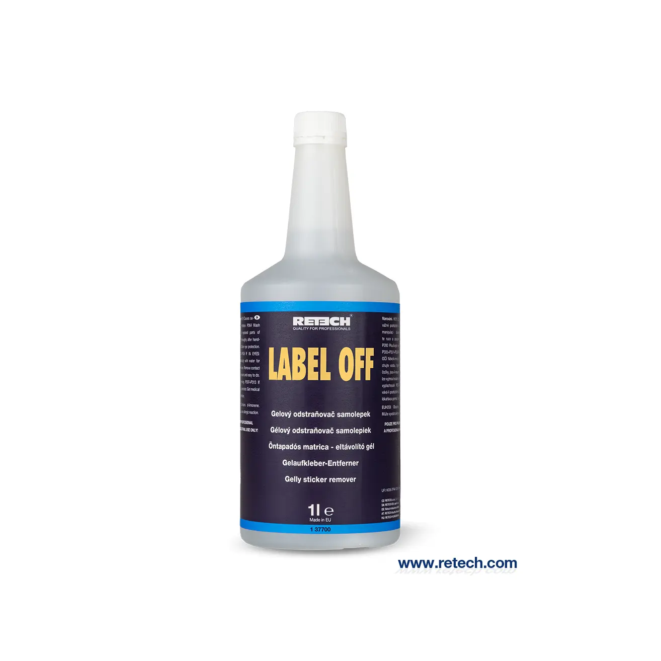 Високоефективен професионален продукт за бързо и чувствително премахване на остатъци от лепило, останали след фолиа, стикери, маскиращо тиксо, етикети, тиксо, текстилно тиксо и др. RETECH Label Off може да се използва в много приложения на всички обикновени повърхности като лак, стъкло, метал, керамика, дърво, пластмаса, поликарбонат, кожа, изкуствена кожа и др