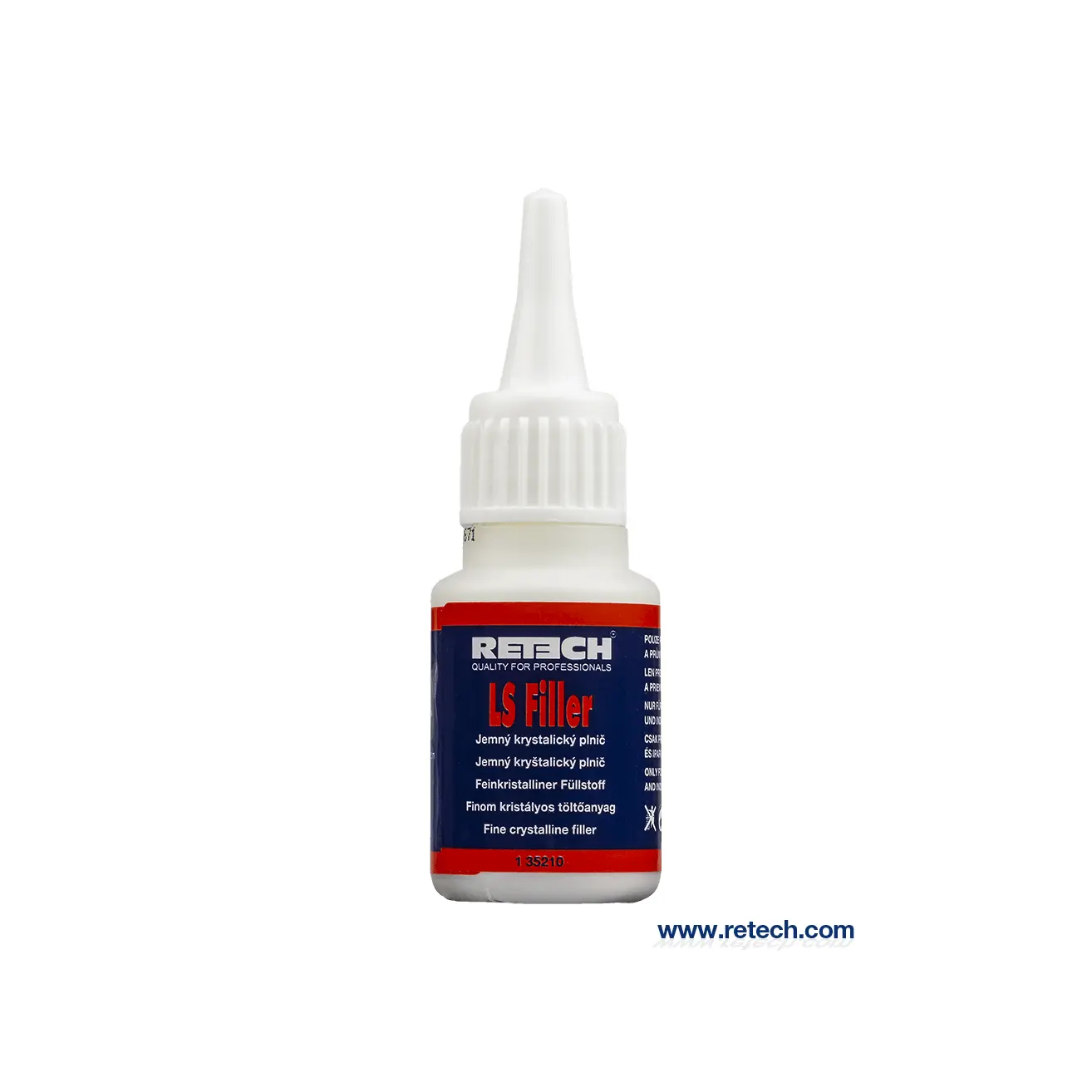 LS FILLER е изключително фин кристален пълнител за цианоакрилатни лепила с ниска вискозност. Използва се по време на ремонти за бързо запълване на фуги и пукнатини. Също така е подходящ като пълнител за заздравяване или повърхностно втвърдяване. Ако по време на нанасянето LS FILLER е слоест с достатъчна дебелина, след втвърдяване, може да се шлайфа пробива ,и дори нарязване на резба в него. Може да се боядисва.Най-добрите и бързи резултати се постигат с цианоакрилатното лепило RETECH POLYFIX R 575.Втвърдява се много бързо при контакт с лепилото.Може да се прилага на слоеве.