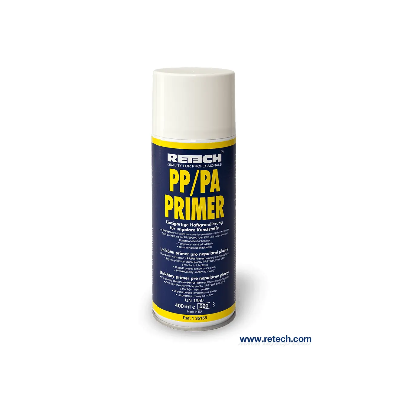 PP/PA PRIMER от ReTech е революционен химически грунд, специално разработен за професионални ремонтни работи на пластмасови повърхности. Този иновативен продукт осигурява превъзходна адхезия на боята към неполярни пластмаси, елиминирайки необходимостта от дълготрайни и скъпи процеси на закаляване.